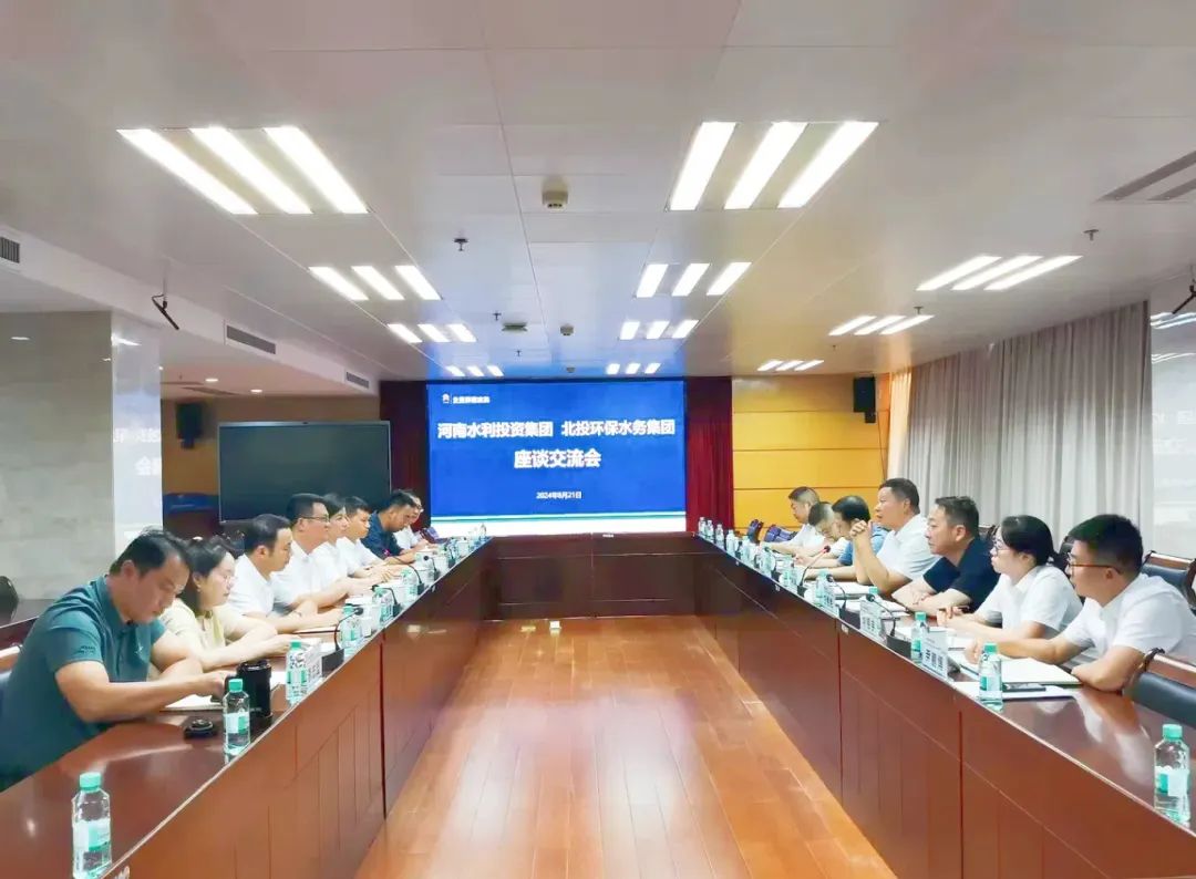 8月21日下午,北投環(huán)保水務(wù)集團(tuán)黨委書記、董事長王長兵與到訪的河南水利投資集團(tuán)有限公司黨委副書記、工會(huì)主席蔡松濤一行開展座談交流,雙方圍繞市場開發(fā)、項(xiàng)目建設(shè)、城鄉(xiāng)供水一體化等相關(guān)領(lǐng)域進(jìn)行了深入探討。河南省水利第二工程局集團(tuán)有限公司黨委書記、董事長、總經(jīng)理甘繼勝,黨委委員、副總經(jīng)理趙祖林;北投環(huán)保水務(wù)集團(tuán)黨委委員、紀(jì)委書記麥冬燕參加了座談。