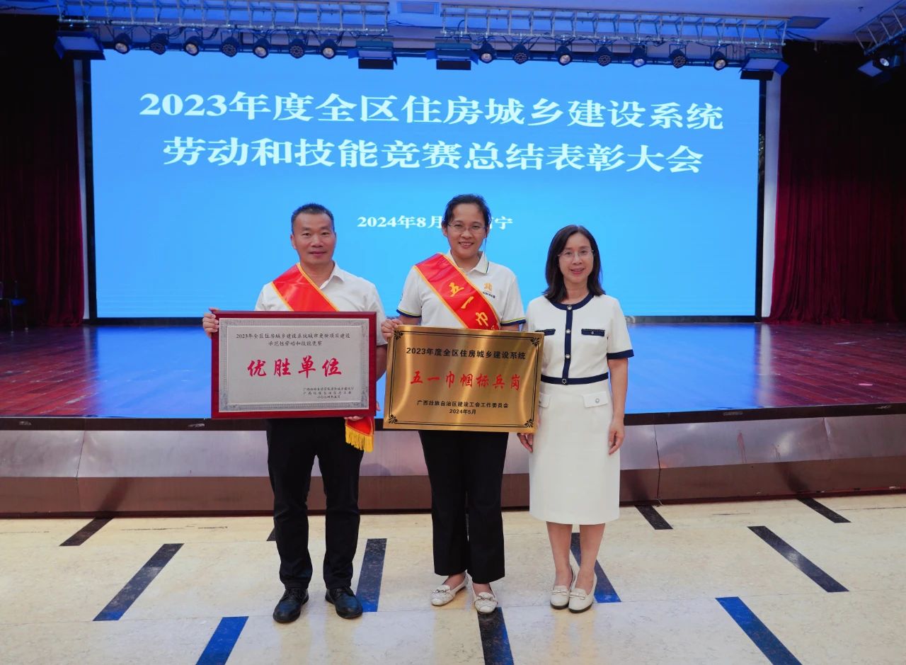 8月28日,全區(qū)住房城鄉(xiāng)建設(shè)系統(tǒng)2023年度勞動(dòng)和技能競(jìng)賽總結(jié)表彰大會(huì)在南寧召開。大會(huì)宣讀了系列表彰文件,并對(duì)獲獎(jiǎng)集體及個(gè)人進(jìn)行頒獎(jiǎng)。環(huán)保水務(wù)集團(tuán)直屬企業(yè)澤源公司獲評(píng)全區(qū)住建系統(tǒng)城市更新項(xiàng)目建設(shè)示范性勞動(dòng)和技能競(jìng)賽優(yōu)勝單位;直屬企業(yè)防城港環(huán)水公司技術(shù)分中心化驗(yàn)班組榮獲“五一”巾幗標(biāo)兵崗榮譽(yù)稱號(hào)。 表彰大會(huì)現(xiàn)場(chǎng) 這是環(huán)保水務(wù)集團(tuán)持續(xù)深化技能提升行動(dòng),不斷提升產(chǎn)業(yè)工人技術(shù)水平的集中體現(xiàn),也是對(duì)環(huán)保水務(wù)集團(tuán)堅(jiān)持“三同”“三看”工作理念、引領(lǐng)帶動(dòng)技能人才立足崗位建功立業(yè)的充分肯定。 澤源公司代表(前排左三)上臺(tái)領(lǐng)獎(jiǎng) 澤源公司作為環(huán)保水務(wù)集團(tuán)控股的項(xiàng)目子公司,主要負(fù)責(zé)北海第二水源項(xiàng)目的投資建設(shè)及運(yùn)營(yíng)。該項(xiàng)目總投資為110768.3萬元,輸水管線(雙管)總長(zhǎng)31.2公里,包含新建輸水管線、輸水隧洞、加壓泵站等。自項(xiàng)目開工以來,澤源公司建設(shè)團(tuán)隊(duì)始終秉持“安全優(yōu)先、質(zhì)量第一”的原則,協(xié)同各參建單位精心組織、科學(xué)施工,克服了極端強(qiáng)降雨、臺(tái)風(fēng)等不利影響,攻克了跨多河流施工、地下水水位高等難題,保障施工平穩(wěn)高效。在沉管施工環(huán)節(jié),通過創(chuàng)新采用“岸上錨機(jī)與履帶吊相結(jié)合+駁船同步起吊配合”的浮運(yùn)旋轉(zhuǎn)沉放施工方法,使管道沉入指定位置,順利完成了3次過江沉管工程。歷經(jīng)14個(gè)月的奮戰(zhàn),該項(xiàng)目已于2024年7月2日正式建成通水,比原定工期提前了10個(gè)月,助力北海市形成“地表為主、多源供水、互相備用”的水源供水新格局,為北海市經(jīng)濟(jì)社會(huì)發(fā)展提供強(qiáng)勁“水支撐”。 防城港環(huán)水公司代表(前排左五)上臺(tái)領(lǐng)獎(jiǎng) 防城港環(huán)水公司技術(shù)分中心化驗(yàn)室共有女職員13名。她們僅用一年時(shí)間,利用水質(zhì)檢測(cè)資質(zhì)對(duì)外接收水樣檢測(cè)192個(gè),為保證城區(qū)用水安全作出了積極貢獻(xiàn),大家都親切稱呼她們?yōu)椤敖韼脚?。在科技?chuàng)新前沿陣地,她們愛啃“硬骨頭”,破“卡脖子”難題,向“星辰大?!边M(jìn)發(fā),創(chuàng)造出一批科技成果。截至目前,該班組累計(jì)發(fā)表論文11篇;獲得國家授權(quán)實(shí)用新型專利8項(xiàng);榮獲廣西壯族自治區(qū)教育廳《層間陰離子對(duì)鋁代α-氫氧化鎳結(jié)構(gòu)及電化學(xué)性能的影響》論文二等獎(jiǎng);牽頭的研發(fā)課題《防城港市排水管網(wǎng)監(jiān)測(cè)系統(tǒng)關(guān)鍵技術(shù)研究及示范》獲得防城港市科學(xué)技術(shù)局科技計(jì)劃項(xiàng)目立項(xiàng)及科研資金補(bǔ)助。 獲獎(jiǎng)合影 下一步,環(huán)保水務(wù)集團(tuán)將以此為契機(jī),進(jìn)一步營(yíng)造崇尚工匠、尊重勞動(dòng)、尊重創(chuàng)造的良好氛圍,依托勞動(dòng)競(jìng)賽、崗位練兵、創(chuàng)新工作室、項(xiàng)目課題組等平臺(tái),加大職業(yè)技能培訓(xùn)力度,積極培育打造知識(shí)型、技能型、創(chuàng)新型產(chǎn)業(yè)工人隊(duì)伍,進(jìn)一步激發(fā)產(chǎn)業(yè)工人隊(duì)伍的勞動(dòng)熱情和創(chuàng)造潛能,為環(huán)保水務(wù)集團(tuán)高質(zhì)量發(fā)展提供強(qiáng)勁的人才支撐。