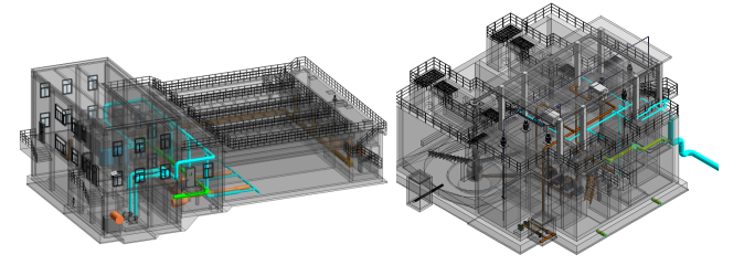 在工程建設(shè)中,項目團(tuán)隊利用 BIM 技術(shù)模擬磁混凝高效沉淀池虛擬施工和智能建造,建立精細(xì)化工程部件模型,進(jìn)行碰撞檢測以優(yōu)化工程設(shè)計,減少施工階段偏差損失及返工。通過全專業(yè)的BIM模型,項目團(tuán)隊在管線碰撞檢查、三維可視化輔助交底、預(yù)留孔洞檢查以及施工過程模擬等方面進(jìn)行了深入探索。這些技術(shù)的應(yīng)用使得施工團(tuán)隊能夠提前預(yù)見并解決潛在的問題,有效避免了傳統(tǒng)施工方法中常見的沖突和返工現(xiàn)象,有利于整個項目高效推進(jìn),極大提高施工效率,最終實(shí)現(xiàn)復(fù)雜工藝構(gòu)筑物建設(shè)過程中零沖突、零返工。