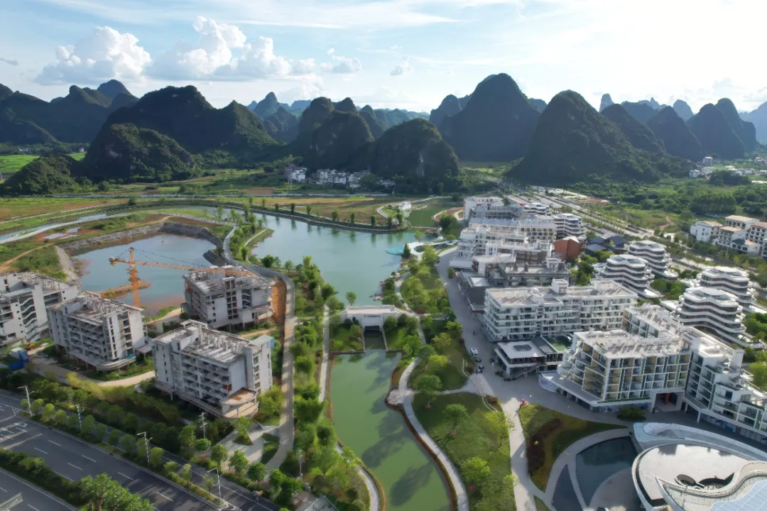 陽朔新城區(qū)地處漓江右岸,田家河、栗木河穿城而過。遇龍河與金寶河交匯形成的田家河流域面積達651平方公里,豐沛水系滋養(yǎng)美景的同時,也帶來洪澇隱患。