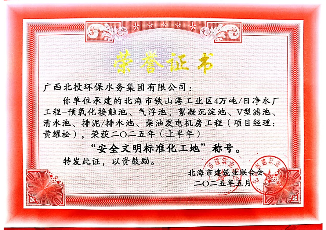 近日,這里迎來一則喜訊:項目被授予北海市2025年(上半年)“安全文明標準化工地”。