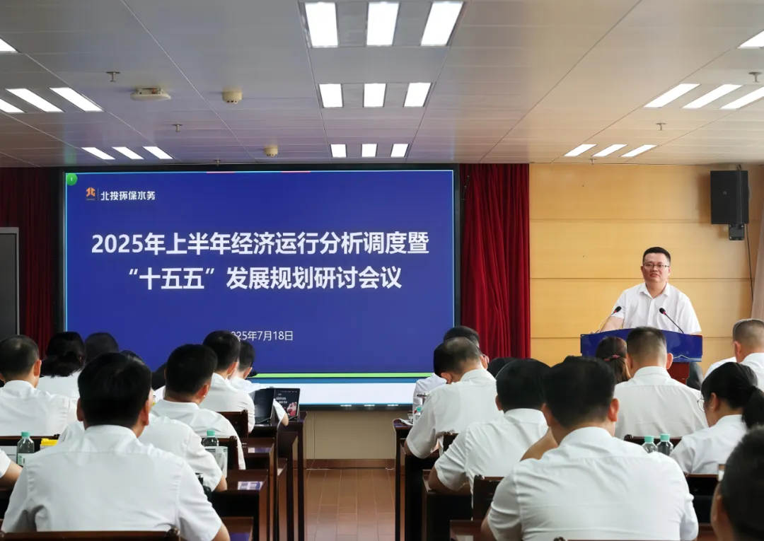 7月18日,環(huán)保水務(wù)集團(tuán)組織召開2025年上半年經(jīng)濟(jì)運(yùn)行分析調(diào)度暨“十五五”發(fā)展規(guī)劃研討會(huì)議,深入學(xué)習(xí)貫徹黨的二十大精神,全面落實(shí)北投集團(tuán)系列會(huì)議部署,總結(jié)上半年工作成效,分析當(dāng)前形勢(shì)任務(wù),部署下半年重點(diǎn)工作,擘畫“十五五”發(fā)展藍(lán)圖。集團(tuán)公司黨委書記、董事長(zhǎng)王長(zhǎng)兵出席會(huì)議并講話。 會(huì)議現(xiàn)場(chǎng) 會(huì)議傳達(dá)學(xué)習(xí)了北投集團(tuán)相關(guān)會(huì)議精神,并充分肯定了環(huán)保水務(wù)集團(tuán)上半年取得的成績(jī)。2025年以來,環(huán)保水務(wù)集團(tuán)深入貫徹落實(shí)北投集團(tuán)“穩(wěn)大盤、強(qiáng)拓展、深改革、提質(zhì)效、防風(fēng)險(xiǎn)”工作部署,圍繞“一體化、規(guī)?;?、智慧化”發(fā)展思路,緊盯全年工作任務(wù),持續(xù)拓展業(yè)務(wù),進(jìn)一步提質(zhì)增效,上半年?duì)I收利潤(rùn)基本達(dá)到預(yù)期目標(biāo)