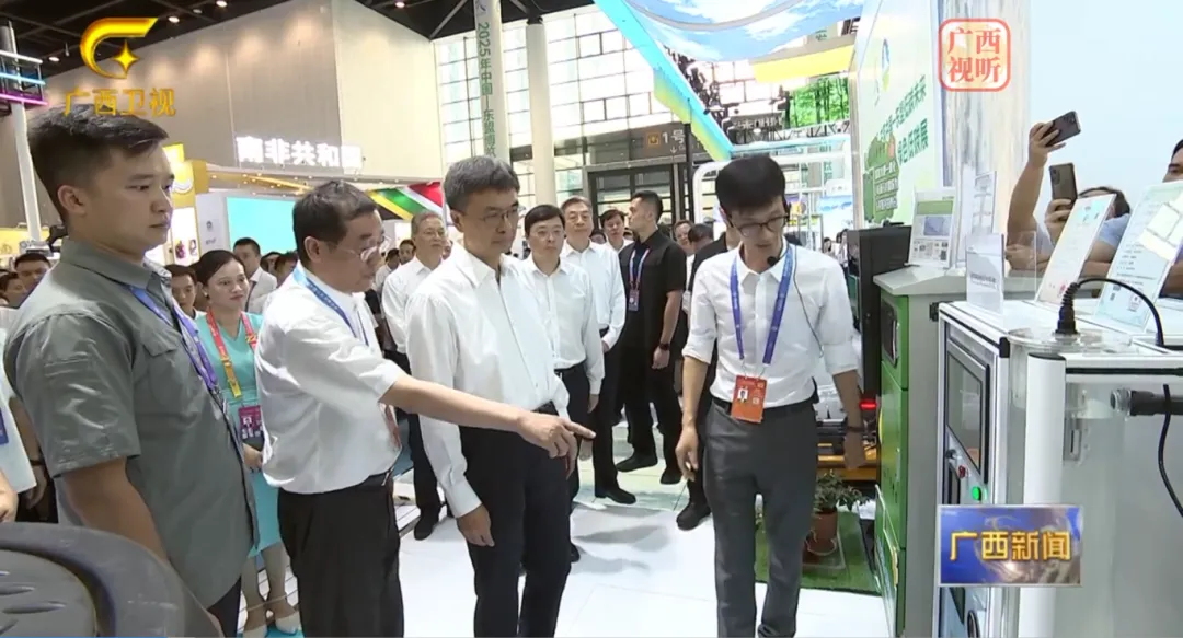 9月19日,自治區(qū)黨委書記、自治區(qū)人大常委會(huì)主任陳剛,自治區(qū)主席韋韜,自治區(qū)政協(xié)主席孫大偉,自治區(qū)黨委副書記王維平等自治區(qū)四家班子領(lǐng)導(dǎo)到南寧國(guó)際會(huì)展中心巡視第22屆東盟會(huì)展館,與參展客商親切交流。 自治區(qū)領(lǐng)導(dǎo)在環(huán)保水務(wù)集團(tuán)展品前參觀了解 環(huán)保水務(wù)集團(tuán)兩項(xiàng)科技成果(右一、右二)在廣西衛(wèi)視《廣西新聞》播出畫面 在綠色低碳展區(qū)以及廣西汽車集團(tuán)、廣西北投低空經(jīng)濟(jì)投資有限公司、中興通訊、中國(guó)通用技術(shù)集團(tuán)展示區(qū),陳剛、韋韜、孫大偉等與企業(yè)負(fù)責(zé)人親切交流,不時(shí)詢問(wèn)企業(yè)生產(chǎn)經(jīng)營(yíng)、項(xiàng)目規(guī)劃建設(shè)等情況,希望大家充分發(fā)揮自身優(yōu)勢(shì),瞄準(zhǔn)行業(yè)發(fā)展新趨勢(shì)新動(dòng)向加大科研攻關(guān)和技術(shù)改造力度,依托東博會(huì)、峰會(huì)平臺(tái),共同開拓東盟和RCEP國(guó)家市場(chǎng),不斷提升企業(yè)競(jìng)爭(zhēng)力 在綠色低碳展區(qū),環(huán)保水務(wù)集團(tuán)“小水滴”AI智能體平臺(tái)、智能碳源投加系統(tǒng)兩款產(chǎn)品的創(chuàng)新與應(yīng)用獲重點(diǎn)關(guān)注。